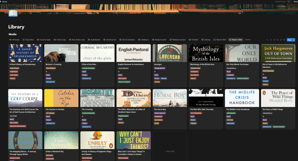 So, the 2025 list. Shorter than recent years and if I’m honest, I’m not sure why. Life getting in the way, perhaps? I’m very keen to carve out more time for reading and writing in 2026, indeed, it is my resolution. That said, I enjoyed many wonderful reads in 2025, including English Pastoral by James Rebanks. The first section, where the author remembers his childhood on a farm with his grandfather was very moving to me. A fantastic book.